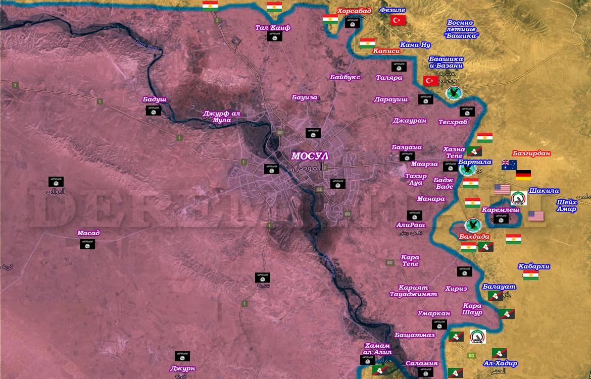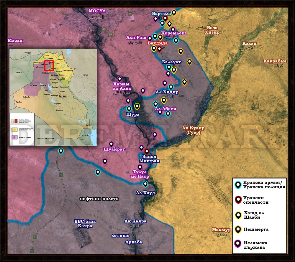 На север, иракската армия поднови своята офанзива срещу ИД в Бакдида и успя да сложи ръка на по-голямата част от града, който бе обсаден два дни по-рано. Още по на север, иракската армия, подкрепяна от кюрдски части достигна до град Тел Кепе (Тел Каиф), разположен на около 20 км. северно от Мосул. До края на деня продължиха сраженията в Бакдида (Хамдания, Каракуш), като частите на ИД успяха да пленят няколко бойни машини, изоставени от авангарда на 9-та иракска дивизия.