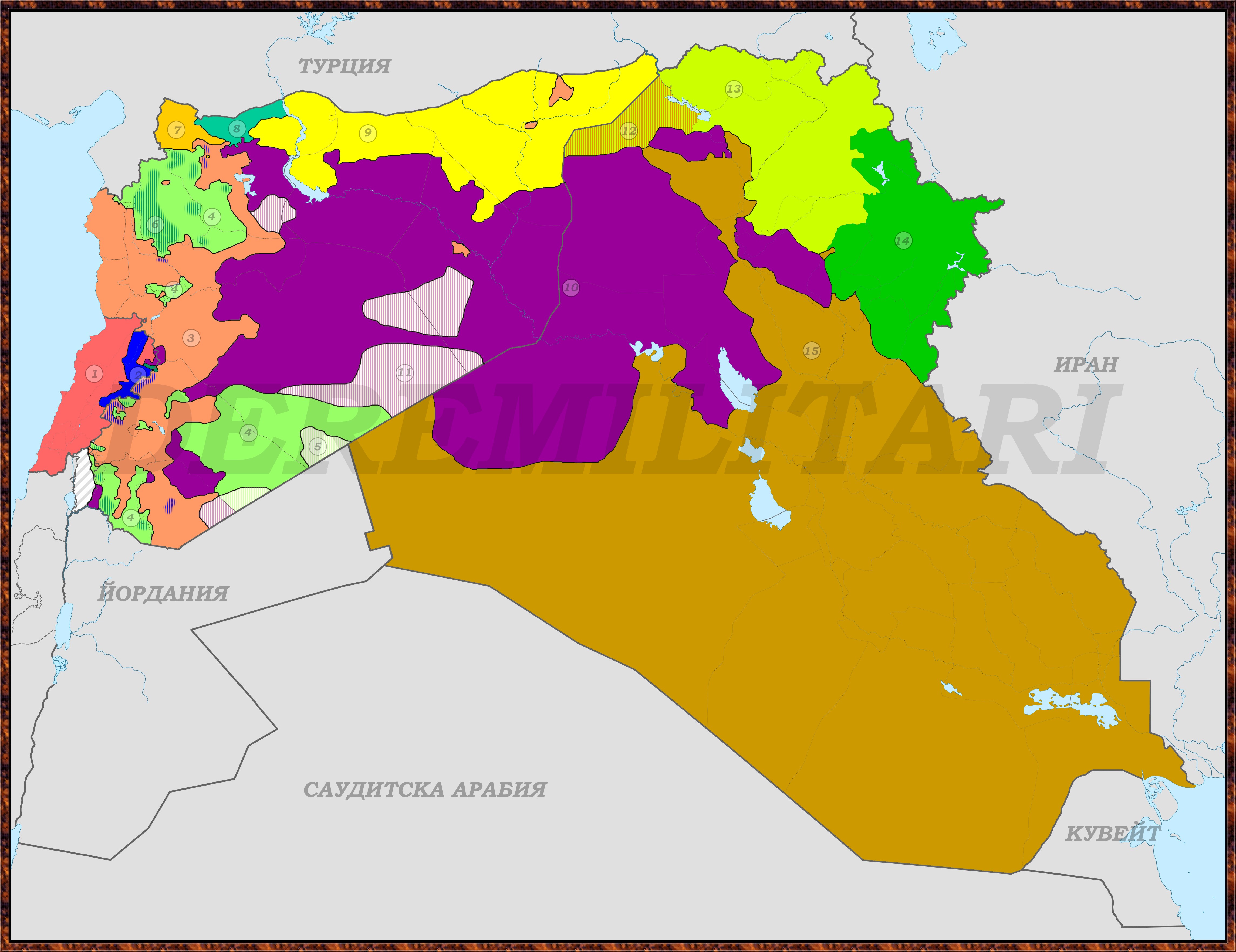 - Сирийски Демократични Сили – коалиция от кюрдски части, сирийски опозиционни групи, асирийски милиции, бедуински кланове от провинция Хасака