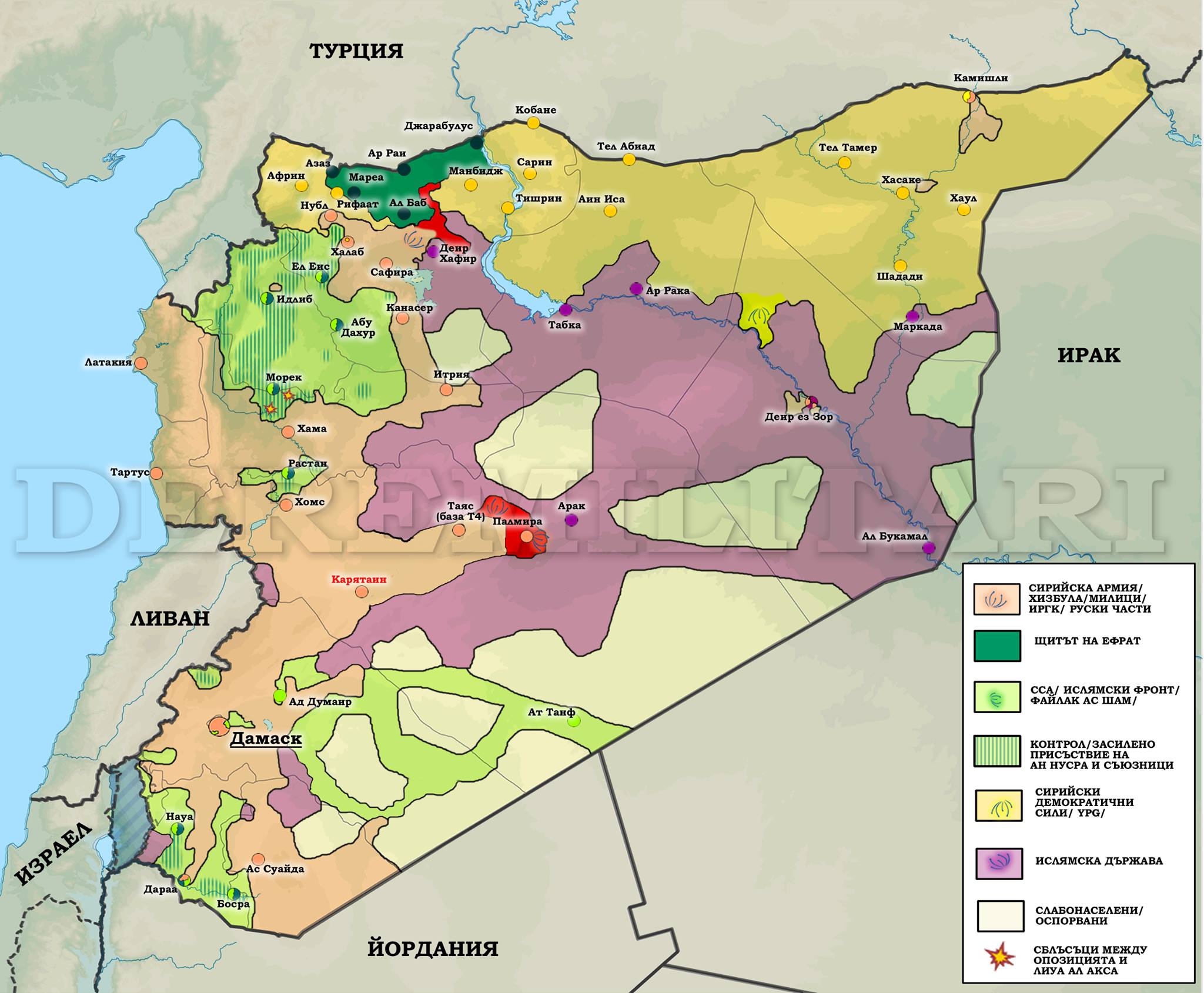 През последните три месеца, правителствените сили в Сирия се намират в настъпление по всички фронтове. Алепо бе завладян в края на 2016 г., преди няколко дни падна и Палмира. Завоеванията на бунтовниците северно от Хомс бяха ликвидирани и фронтовата линия се върна към състоянието си от миналата пролет. Няколко важни бунтовнически анклава около Дамаск бяха завладени, изолирайки последните гнезда на опозиционна съпротива в района на Гута. Преди два дни силите верни на Асад завзеха и голямата помпена станция на река Ефрат, с което притокът на питейна вода към Алепо бе подсигурен. По всичко изглежда, че плачевното състояние, в което сирийската правителствена фракция се намираше през лятото на 2015 г. е само лош спомен. За съжаление на сирийския народ и на президента Асад, фасадата от фронтови успехи създава погрешно впечатление за колапса на правителствената власт.