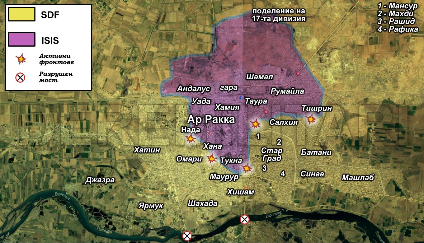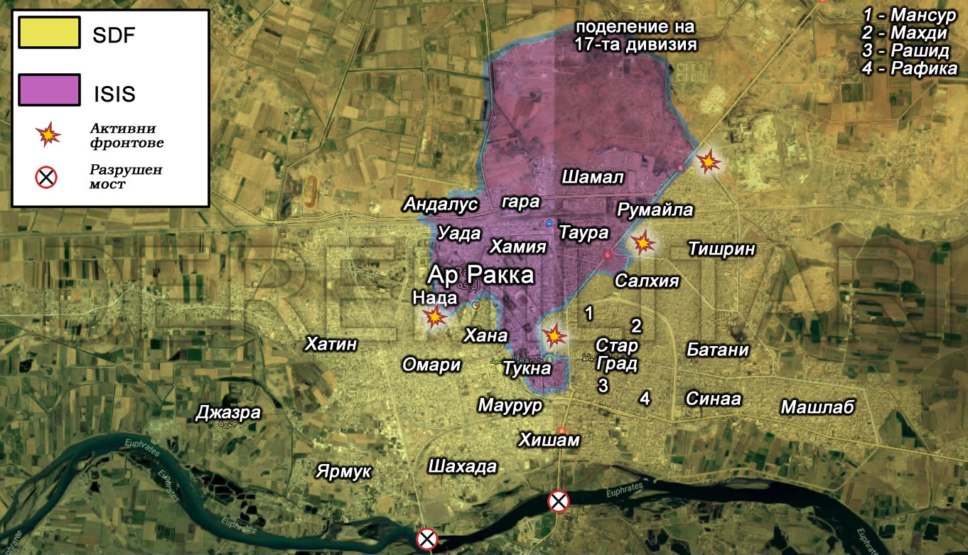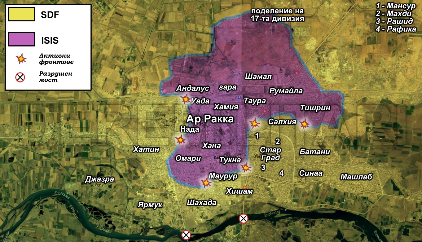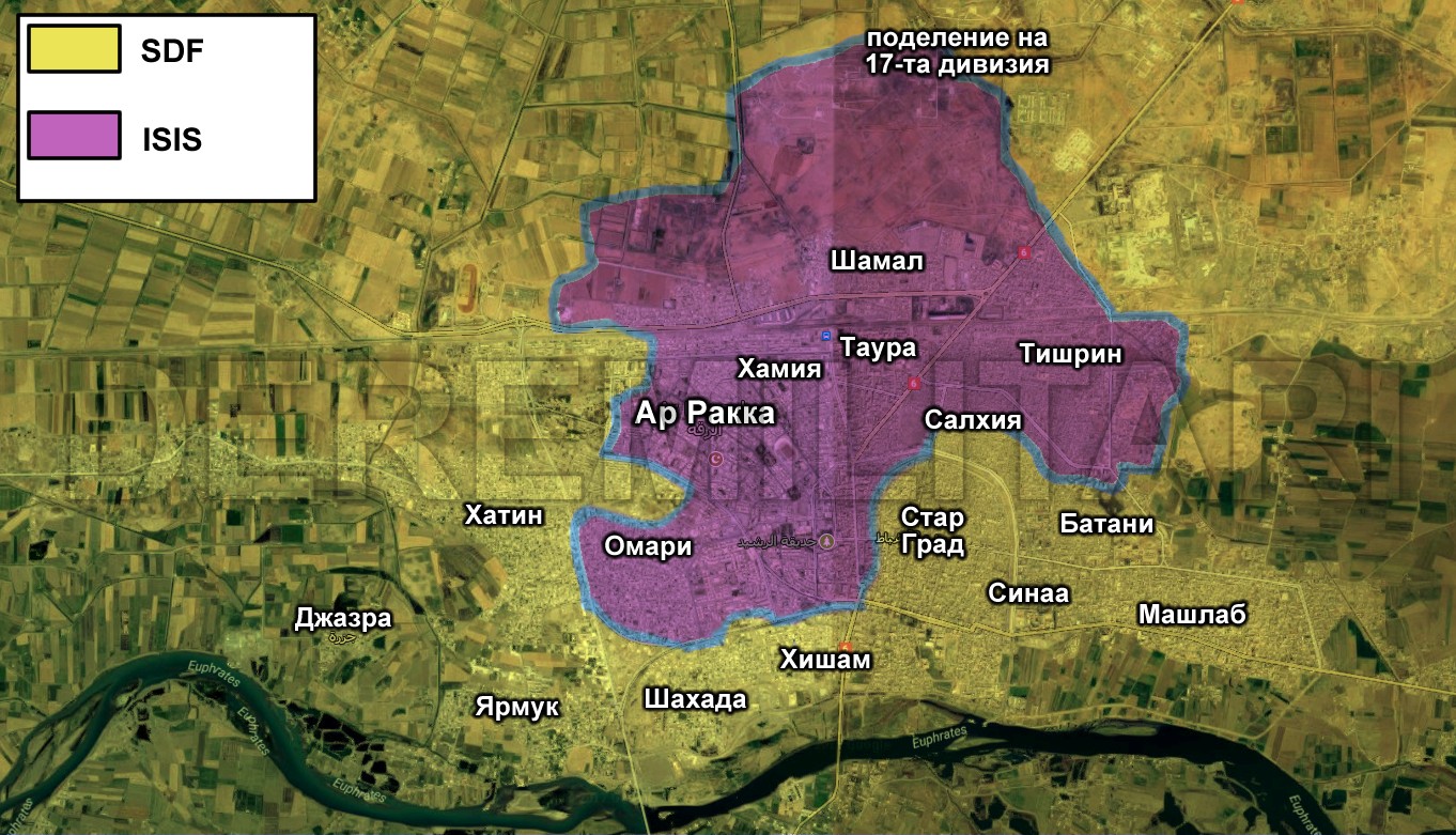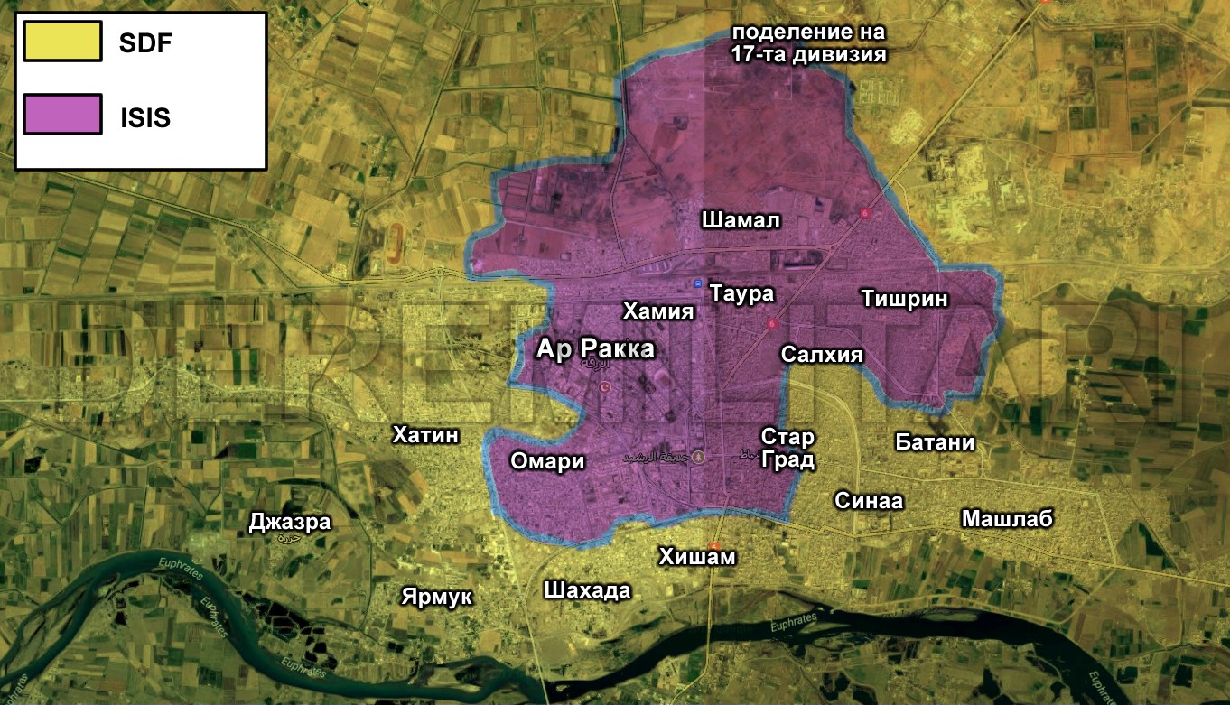 - Съобщение от De Re Militari: Информацията се обновява постоянно с развитието на офанзивата в Ракка. Най-новите данни можете да намерите в края на публикацията, която започва с първите дни на атаката срещу позициите на Ислямска държава в града.