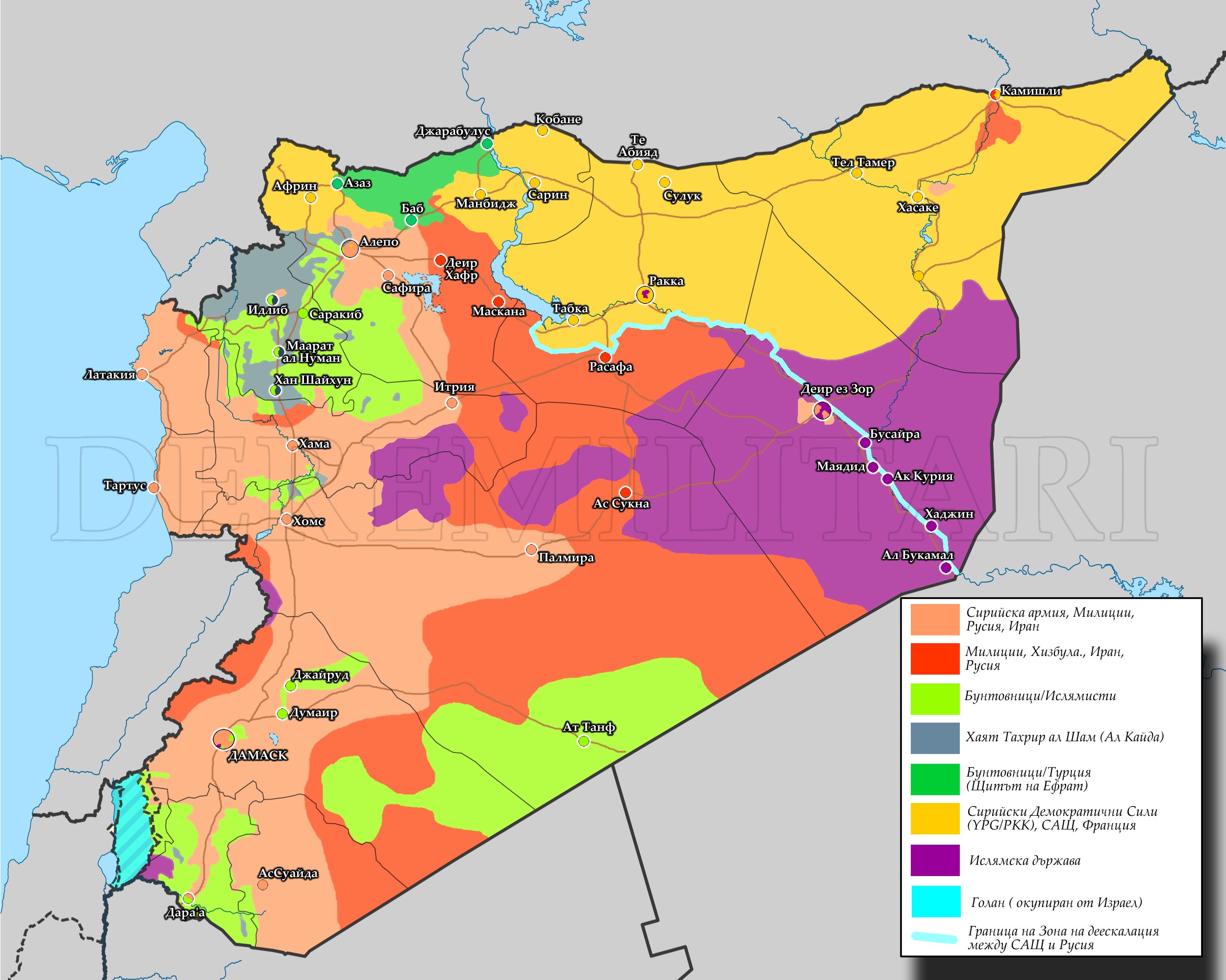 Разпределение на силите в Сирия към 21-08-2017 г.