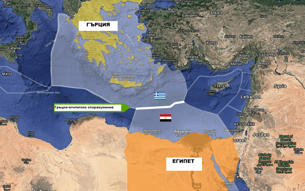 Нов епизод от нарастващото напрежение в Средиземно море дойде, след като Гърция и Египет обявиха, че са сключили споразумение относно морските си граници. Споразумението, което определя границата между изключителните икономически зони на двете страни, ще позволи на Атина и Кайро да осигурят максимални ползи от нефта и природния газ в района. Египетският външен министър Самих Шукри проведе конферентен разговор с гръцкия си колега Николаос Дендиас. Гръцко-египетската сделка идва на фона на обтягане на отношенията в рамките на ЕС и НАТО заради проучванията на Гърция, Турция, Италия и Египет за природен газ в Средиземно море. Темата е пряко свързана и с войната в Либия, където страни-членки на ЕС и НАТО подкрепят различни лагери.