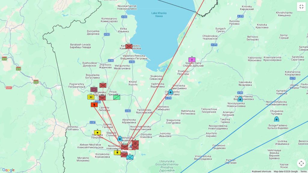 На север от Владивосток в град Усурийск, близо до границата с Китай, се намира щабът на руската 5-та армия, състояща се от механизирана дивизия, механизирана бригада, артилерийска бригада, ракетна бригада и огнехвъргачен батальон. Освен големия брой бронирани транспортни средства, танкове, гаубици, ракетни установки, минохвъргачки и противотанково снаряжение, 5-та армия има и 12 балистични ракети с малък обсег RS-SS-26 „Stone“ (9К720 „Искандер-М“) с обсег до 500 км. Ракетите „Искандер“ могат да бъдат и оборудвани с ядрени бойни глави.